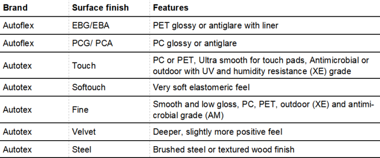 Autotex is a high quality textured polyester* film, developed for applications requiring a combination of high abrasion resistance and flexibility such as embossed membrane switches.