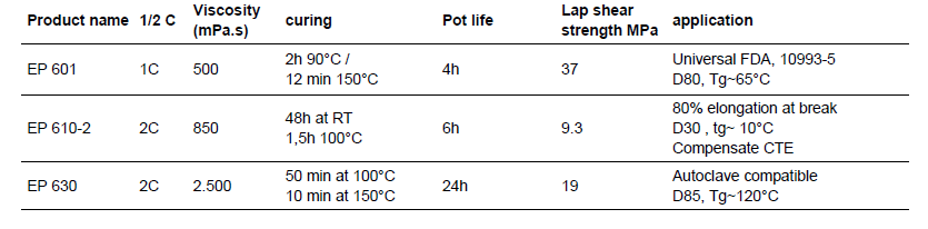 Epoxy and UV adhesives from structural bonding, electronically conductive, to thermally conductive adhesives, chip assembly, bonding plastic, glass, metal...